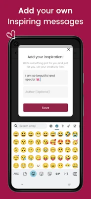 Add your own affirmations or messages to the app and build a collection that reflects your inner voice. Use your experiences to inspire and uplift yourself and others.