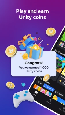 Play your favorite games, earn Unity coins for reaching new levels, and then redeem them for your favorite gift cards, or even real 💸 cash money!