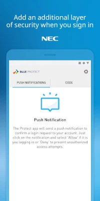 UNIVERGE BLUE™ PROTECT is a two-factor authentication app that adds an additional layer of security, by requesting an additional code, when you sign in to your UNIVERGE BLUE service.