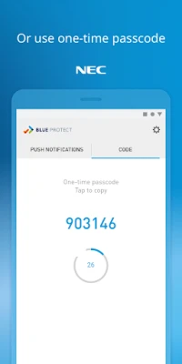 - If you are using one-time passcodes, the PROTECT app will generate a one-time passcode that you must enter in order to access an UNIVERGE BLUE service.