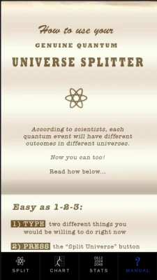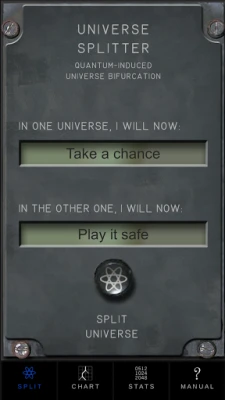 When faced with a tough choice, Universe Splitter allows you to live out BOTH of your options... in separate realities.* No mere coin-flip app can make this claim!