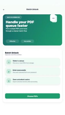 Whether you need to unlock one file quickly or work through multiple PDFs together, the app is designed to keep the process simple and easy to follow.