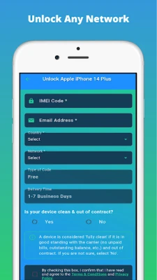 We do not unlock stolen, blacklisted, or contract-bound devices. We do not support illegal unlocking of any phones. By using our service, you confirm that your device is legally eligible for unlocking under your carrier’s terms and applicable regional laws. Always read our Privacy Policy and Terms & Conditions within the app before submitting an unlock request.