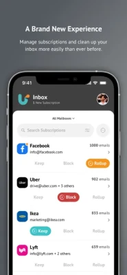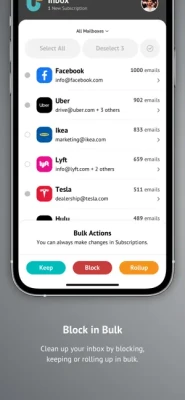 • Block, keep, and rollup your subscription emails, either in bulk or individually.