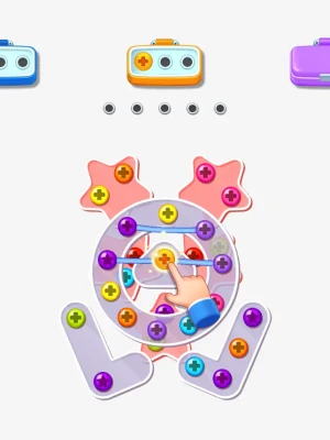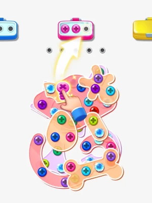 Features: - Matching screws with the same color and put them in the toolboxes to pass each level. - Each level will have a different board theme with unique shape to challenge your brain.