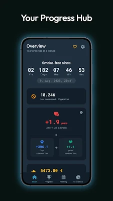 It gives you a clear overview of your progress, lets you log setbacks transparently, and shows realistic milestones over time.