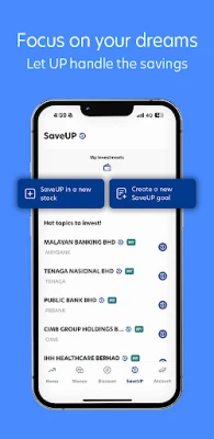 Your Go-To Trading Platform: UP makes trading simple and rewarding. Easy Investing: Our user-friendly platform guides you effortlessly. Fractional Investing: Own small portions of your favorite stocks. Regular Savings Plan (RSP): Invest consistently and watch your wealth grow. Competitive Pricing: Get the best value for your investments. Discover Hot Stocks: Check out our trending stock picks. Peace of Mind: Fully operated by CGS International Securities Malaysia Sdn. Bhd.