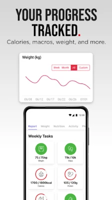 Your progress tracker lets you record your diet, meals, sleep, step count, body weight, progress photos and more – giving you the data and motivation to smash your goals.