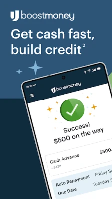 Boost Money™ is an all-in-one app designed to help you build credit with responsible use, grow savings, and get access to cash to help bridge the gap between paydays.
