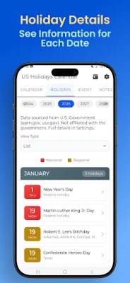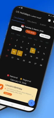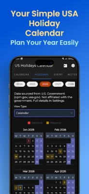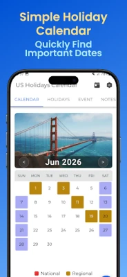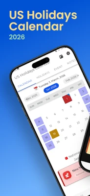 Easily check United States public holidays in 2026 in one simple app. Stay organized and plan your vacations, trips, and important events with a clean and easy-to-use calendar.