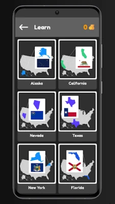 In this game, you see all 50 USA States with Maps and Flags, there is a Section for learning so you can sharpen your skill in States Quiz