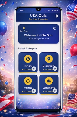 USA Quiz is an independent educational and entertainment application designed to test your knowledge with fun trivia questions related to the United States.