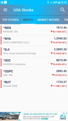 App covers multiple assets from DOW Jones, NYSE & Nasdaq exchanges, so that you may track Indices & Sectoral Indices from US Exchange Market.