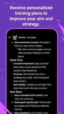 Improve your performance in Valorant with smart stats and AI analysis. Your AI coach for Valorant! 🚀