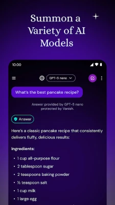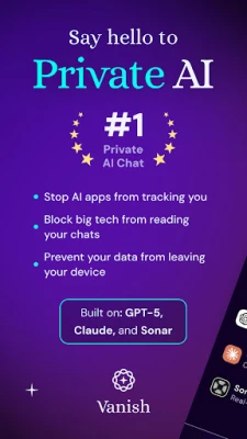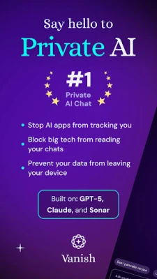 Welcome to Vanish Private AI Chat by Startpage, your mystical AI chat companion available today on Android. Vanish Private AI ensures your privacy & security by never logging your IP address or chat queries, saving conversations only locally on your device (never on our servers), and granting you the power to easily erase individual chats or your entire chat history.