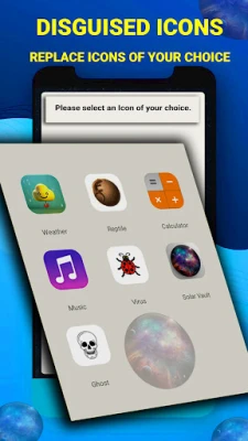 🌟 Launcher Icon Change: Enhance the secrecy of your Solar Vault Icon by disguising it with alternative icons such as Weather, Virus, Ghost, Music, Calculator, etc.