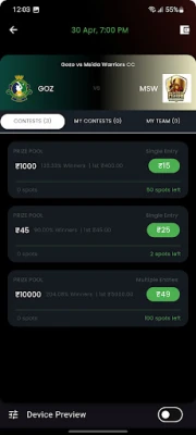 ✅ Low Entry Fee Contests: Start competing for cash prizes with just ₹15.