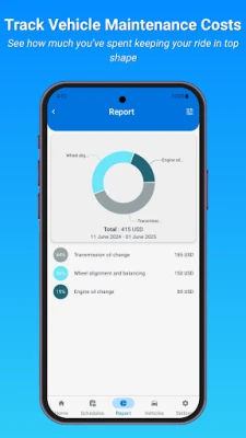 Vehicle Logs records and displays the total maintenance cost for each of your vehicles, helping you monitor spending and plan your budget efficiently.