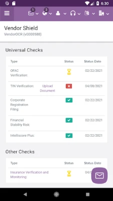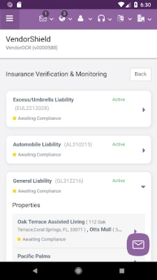 VendorCafe App features (options vary based on individual vendor and client configuration): - View vendor profile status across multiple clients. - Review Invoice information such as Pending, Paid, Not Submitted or Rejected Invoices. - Interact with clients through QnA feature. - View VendorShield Compliance status. ( if applicable) - Change Login Password. - Use Help/Tutorials and Contact Customer Support.