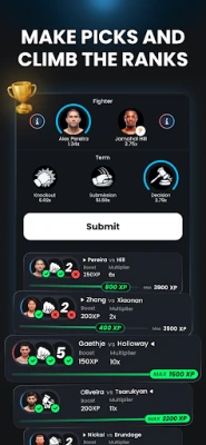 Verdict creates a leaderboard every fight night and whoever gets the most picks correctly places on top. This game is free and enjoyed over the world. We now have free MMA Fantasy Leagues. You can play with a small group of friends through a Season. At the end of the Season, the fan with the highest score wins.