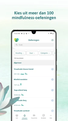 Wil jij beginnen met mindfulness of je mindfulness-training verder verdiepen? Ga dan aan de slag met deze gratis mindfulness app. Dit is al 10 jaar dé mindfulness app van Nederland. Kies zelf uit de meer dan 100 luisteroefeningen in het Nederlands.