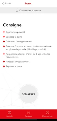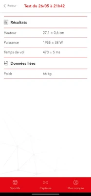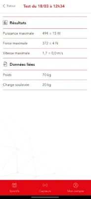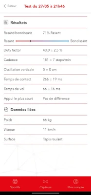 An innovative application designed to assess physical performance in sport, whether you're an amateur enthusiast or an experienced athlete. The application allows you to assess your stride along the grazing-bouncing continuum, as well as the side with the shortest support on the ground. It also assesses the reactivity and power of the lower limbs (counter movement jump and squat jump), as well as the strength-speed profile of the lower and upper limbs. The measurements are taken using an inertial measurement unit positioned on the pelvis or wrist. The results are generated in a matter of seconds using high-performance machine learning algorithms.