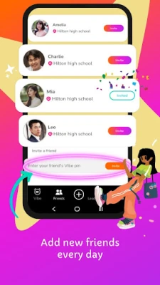Use the Vibe pin to add friends. It’s fast, easy and secure. Your email address and phone number stays private.