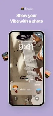 On Vibes you share your current mood and status with your close friends, live on their Lock Screens.