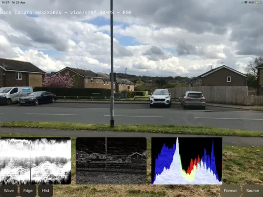 - Edge View: Activate a sharp, black and white edge detection overlay to highlight contours and shapes, enhancing composition and focus.