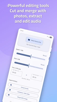 Music speed changer, video speed controller, pitch shifter, nightcore maker, slowed reverb, audio editor, video to audio, compress video, music cutter, audio trimmer, chipmunk voice, tempo changer, time stretch, music looper, vocal practice, transpose music, fast motion, slow motion video.