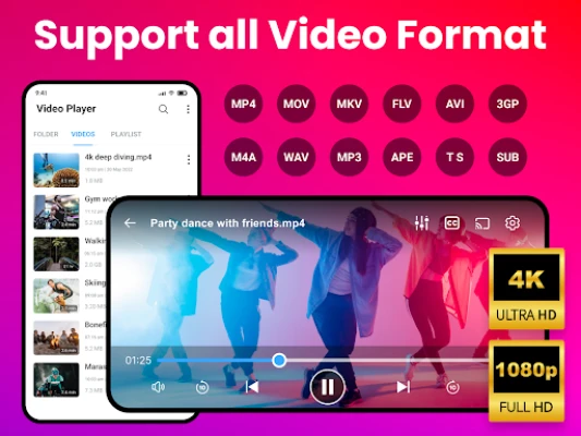 Video player all format: Plays various video formats including MP4, MKV, AVI, and more.