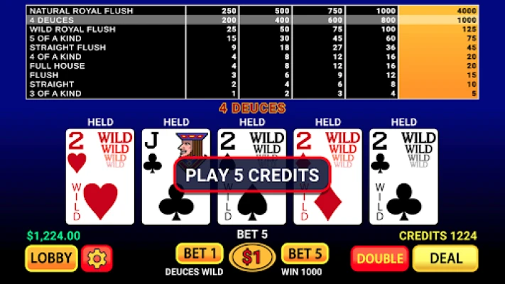 This is the original video poker you know and love from REAL casinos, with real card shuffling, REAL pay table, REAL dealing, and the full Las Vegas slots experience. Play all your favorite video poker free games including: Jacks Or Better, Double Bonus Poker, Double Double Bonus Poker, Joker Poker, Deuces Wild, Bonus Deluxe Poker & More.