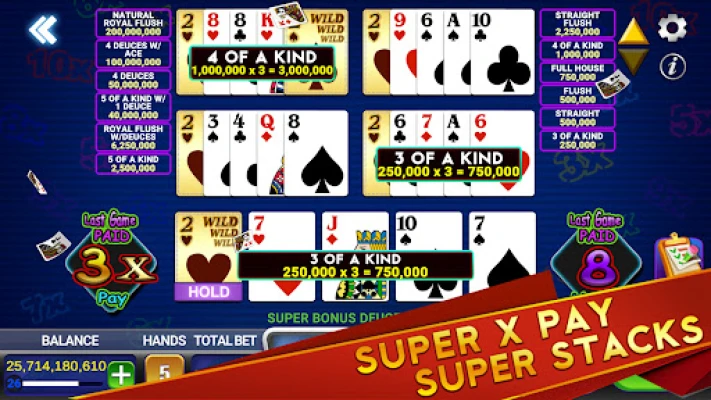 - Play new modes inspired by Ultimate X Poker, Hot Roll Poker, Multi Strike Poker & more!