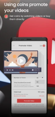 Redeem your virtual currency to promote your own videos which will be watched by others.