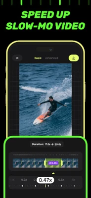 This app is ideal for editing slow motion video captured by your phone. Import your slow motion clip and fine-tune the playback with precision. Slow it down even more, speed up parts, or mix both effects in one video with ease.