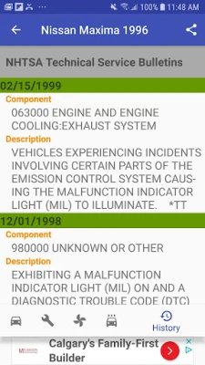 ⍟ NHTSA Technical Service Bulletins such as recalls
