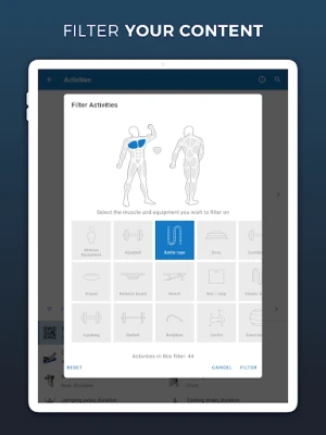 Virtuagym Touch provides access to our exercise database of thousands of hi-res animated exercises and workouts. With that much content, your members will find a plan for every type of goal. Thanks to the workout filters, you can set up dedicated touchpoints for free weight zones, functional training rooms, and more.