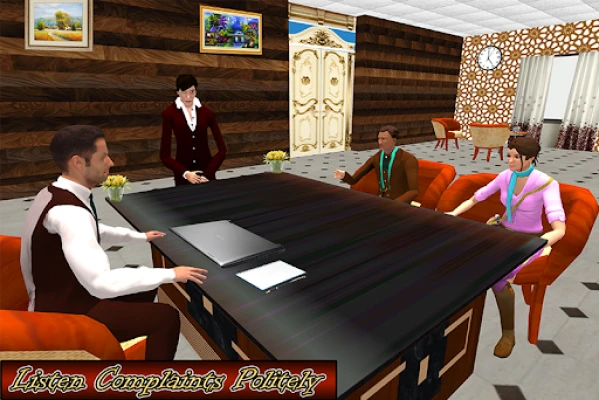 Introducing the Virtual Manager Hotel Star game where you got hired for the job of hotel manager of a luxury city hotel. This is your first day of hotel management job, get information from the receptionist about your virtual office and take the keys. The room service boy will help you to find your office in hotel manager game. Try to deliver the best services and fulfill all your responsibility in hotel booking game.