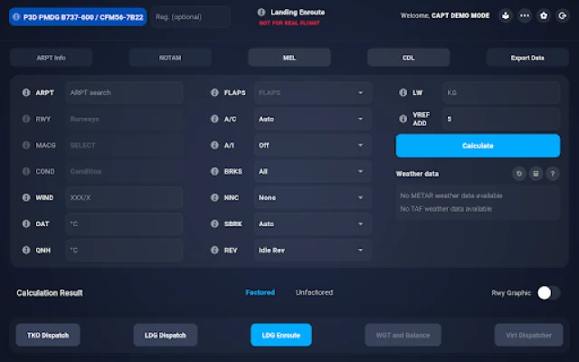 "As a real-life 737 captain, I'm thoroughly impressed with Virtual Performance Tool. It not only meets but exceeds my expectations, offering functionalities I wish for in real-world operations. This tool takes flight simulation to the next level with its in-depth performance calculations and comprehensive Weight and Balance features. Essential for anyone seeking to conduct detailed flight planning. It enhances all aspects of pre-flight preparation, covering everything from NOTAMs and intersection takeoffs to Engine-Out Standard Instrument Departures (EO SIDs), non-normal, and Configuration Deviation List (CDL) calculations. A genuine game-changer for pilots and enthusiasts alike. Worth every cent."