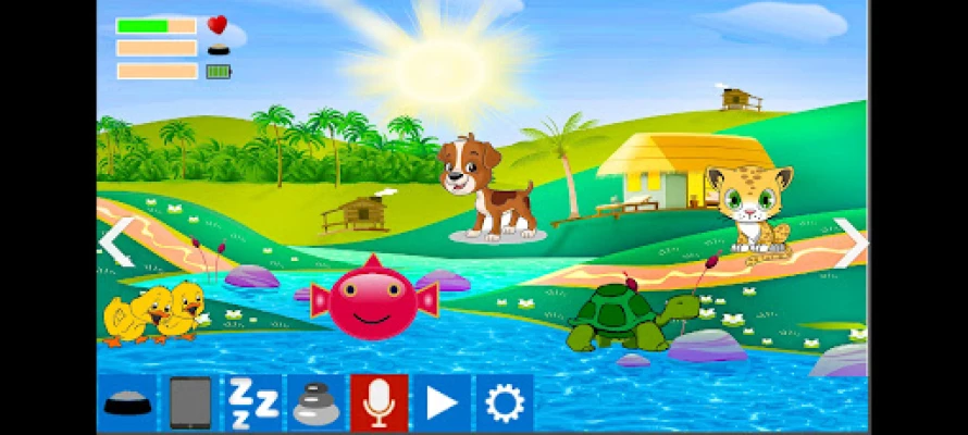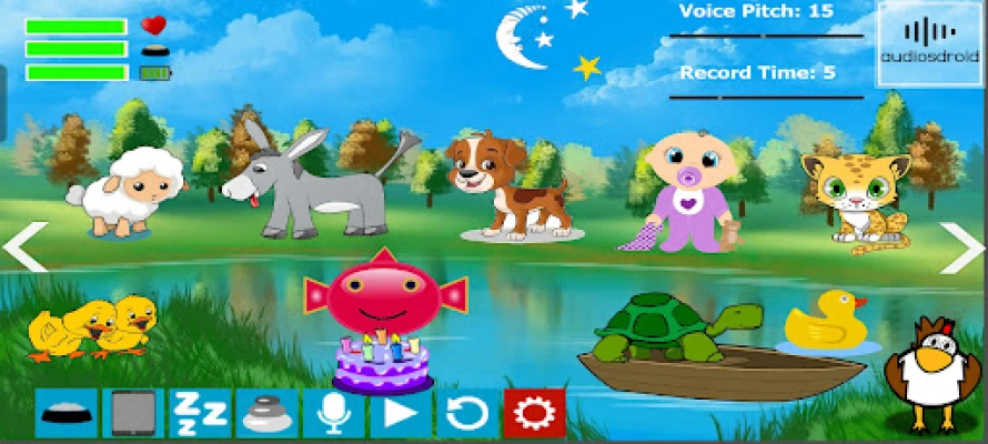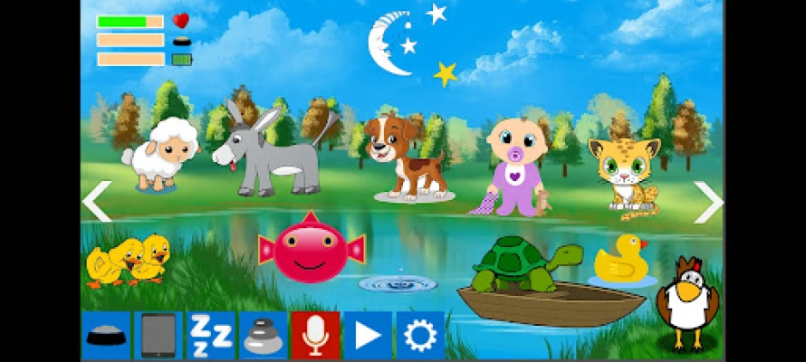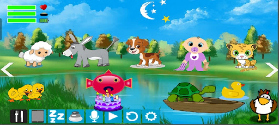 ▶ Explore the beautiful lake in the forest with your fish and meet lots of animal friends along the way! You'll hear the sounds of roosters, dogs, cats, sheep, donkeys, ducks, chicks, turtles, and even a baby!