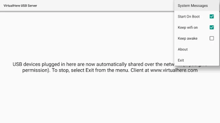In Trial mode, this app will support sharing one USB device seven times. If you want to continue to use the app and have advanced features like sharing more than 3+ devices from a single Android server, or running the client as a service, please purchase a license from https://www.virtualhere.com/android