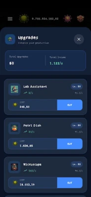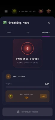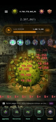 Start with a single tap. Spread your virus, earn resources, and reinvest into powerful upgrades that multiply your output. Unlock facilities that automate your progress so your empire grows even when you're offline.