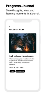 Save your experiences in Horizons. Each goal has its own journal. Save your thoughts, wins, learning moments, and photos. Reflect on your progress to learn and feel motivated.