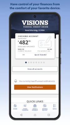 Save yourself the trip to a Visions office or ATM by using Express Deposit - take a picture, deposit your check! Plus, enjoy the other functions of our App, including: