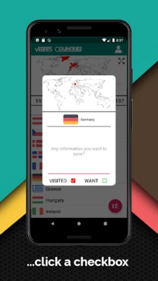 Visited Countries lets you create a free account to store a list of the countries you have been to, the countries you want to go to and information about them. This application is totally free and: