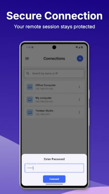 • Secure login flow: Password prompt before connecting