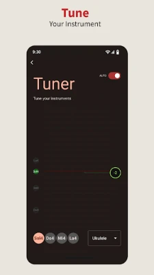 Tune common musical instruments with precision. Whether you play guitar, violin, ukulele, or other popular instruments, the built-in tuner has you covered.