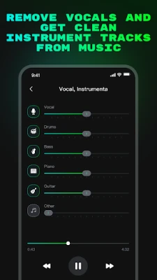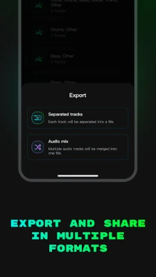 -Export: Extract and share high-quality audio mixes and separated stems. Perfect for extracting stems for use with other track makers or with our vocal remover.