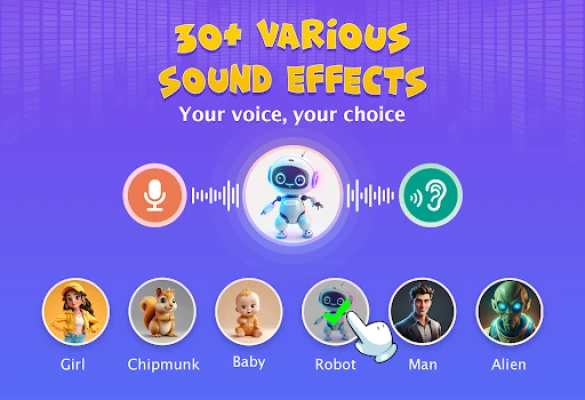 Welcome to the voice changer AI app! This voice effects app will turn your voice into a unique masterpiece. Record voice, apply effects, and share them with your friends. Whether you’re a content creator, a prankster, or someone who just loves to explore new soundscapes, this app is perfect for all your voice manipulation needs. Let's explore distinctive sound effects and create imaginative audio recordings.