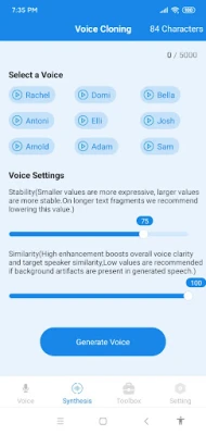 Introducing AI Voice Cloning, an innovative voice generation app that lets you harness the power of advanced artificial intelligence technology by ElevenLabs to recreate the voices of your friends, family, and even your idols!